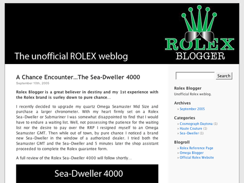 Currently a triumph of style over substance [hence much in keeping with the brand itself] take a look at Rolex Blogger. He has wisely linked to here so can’t be all that bad